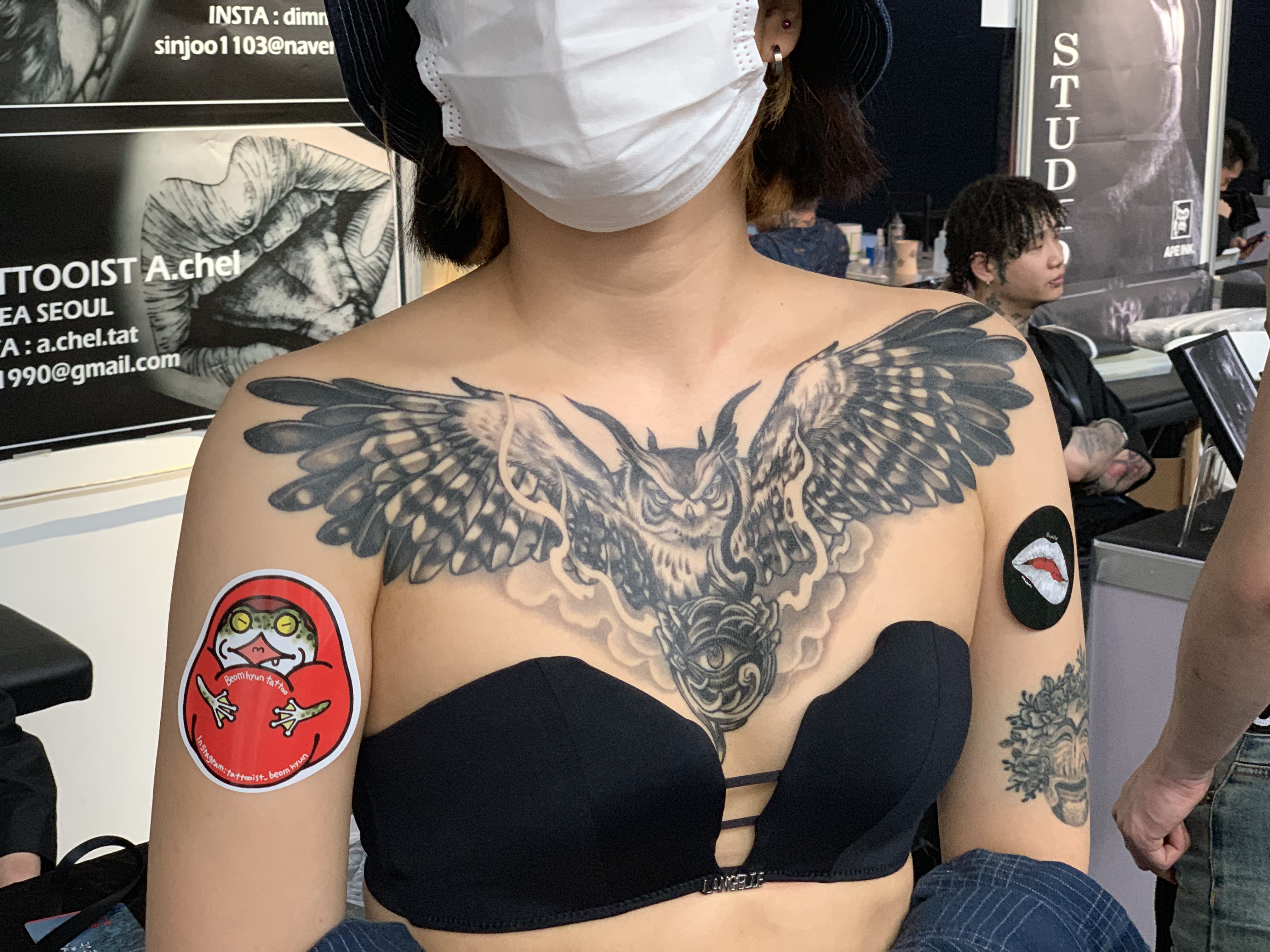 홍대타투하우스의 딤머~~ 여자 가슴부위 부엉이~~~